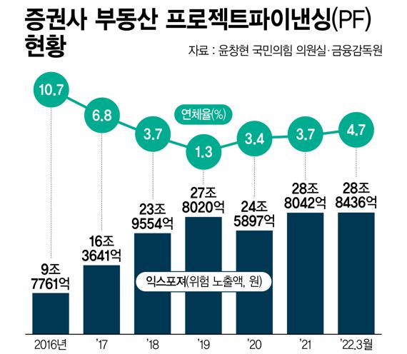 국고채 금리가 일제히 상승합니다. 10년물과 20년물 금리는 연고점을 돌파하죠. 2011년 이후 최고수준입니다. 부동산 경기마저 침체되면서 투자 심리가 위축됩니다. 특히 건설사업 자금을 확보하는 프로젝트 파이낸싱(PF) 시장이 직격탄을 맞으며 건설사와 증권사가 줄도산 할 수 있다는 루머까지 돌게 됩니다.