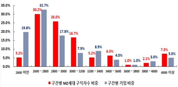 부산 지역 MZ세대 구직자 희망 초임과 기업의 현실 초임 비교(대졸 사무관리직 기준). ⓒ그래프 부산상공회의소 제공, 파이낸셜뉴스