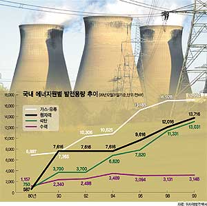 전문가들에 따르면 에너지자원의 가체매장량은 석유 41년, 천연가스 61년, 석탄 230년 분에 불과하다.중국 등 개도국과 구공산권 국가들의 급격한 수요증가를 감안하면 사용가능년수는 더욱 단축될 것으로 보인다.따라서 원자력 등 새로운 에너지 개발의 필요성은 절실하다고 전문가들은 입을 모은다.게다가 국제사회는 지구온난화를 방지하기 위해 92년 UN환경개발회의에서 ‘기후변화협약’을 채택했다.이산화탄소 방출량을 90년대 수준으로 묶는 이 협약이 94년 발효됨으로써 각국은 이산화탄소 방출량을 줄일 수 있는 에너지원 발굴과 개발에 전력을 투구하고 있다.우리나라 또한 예외는 아니다.조력과 풍력,태양력 발전 등이 검토되고 있으나 원자력이 유력한 대안으로 떠오르고 있다.방사능 유출사고 우려와 폐기물 처리 등에 대한 우려에도 불구하고 원자력은 저렴한 에너지원으로서 높은 점수를 받고 있는 실정이다.kW당 발전단가(2000년 기준)만 봐도 원자력이 39.34원인 반면 중유발전은 67.44원으로 근 두배나 비싸다는 점이 원자력 발전에 무게를 실어주고 있다.