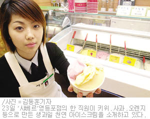 하지만 점포수가 늘어나고 소비자들의 취향이 고급화되면서 아이스크림 전문점이 세대교체기를 맞고 있는 것. 세대교체의 주역은 생과일 천연 아이스크림.