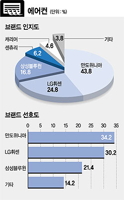 ◇브랜드 인지도=에어컨의 경우 인지도에서는 전문업체 제품이 가장 높았다.