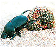 초등학교 시절, 운동장에 물주전자를 들고 선을 그어 본 사람이라면 앞을 보면서도 똑바로 선을 긋기가 힘들다는 것을 이미 체험했을 것이다. 그러나 말똥구리는 엉덩이를 하늘 높이 쳐들고도 먹이를 굴려 어김없이 자신의 집을 찾아갈 수 있다.