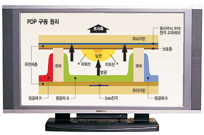 최근 DVD의 보급과 함께 플라즈마 디스플레이 패널(PDP) TV와 액정표시장치(LCD) TV의 인기가 치솟고 있다. 브라운관TV를 제치고 거실의 주인공으로 자리매김하고 있는 PDP의 원리는 무엇인지 알아본다.