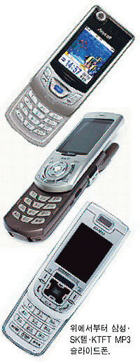 1일 휴대폰업계에 따르면 삼성전자, LG전자, 팬택계열, SK텔레텍, KTFT 등은 하반기 시장을 겨냥해 폴더를 밀어올리거나 내리는 슬라이드 방식에 MP3기능이 합쳐진 ‘MP3형 슬라이드폰’을 주력으로 내세울 것으로 보인다.