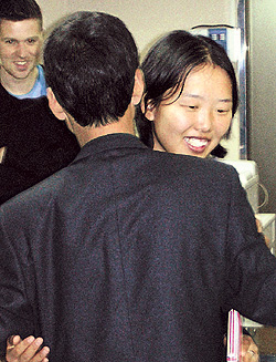 ■사진설명=네덜란드 입양아 김시라씨가 22년만에 친아버지를 마나 포옹하고 있다.
