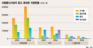 지난해 휴대폰 번호이동성 시행으로 중고폰 발생이 급증했는데도 불구하고 이통사들의 재활용 및 폐기비율은 2003년과 크게 변화가 없는 것도 이러한 구조적인 문제점에서 기인한 것이다.