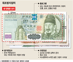 한국은행은 18일 급증하고 있는 위폐를 방지하고 품질을 선진국 수준으로 높이기 위해 모든 권종의 지폐를 전면 교체하기로 했다며 이같이 밝혔다.