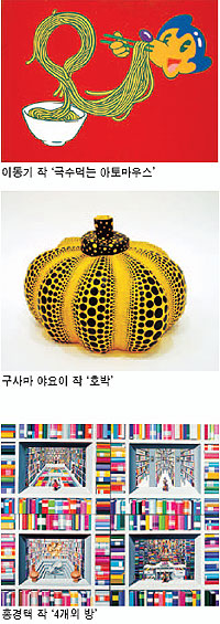 서울 평창동 가나아트센터에서 25일 오픈하는 ‘POP! POP! POP!-한·일 현대미술의 단면’전이다. 한·일 팝아트를 대표하는 작가 14명이 회화, 조각, 사진, 영상, 설치작품 등 100여점을 출품해 현란하고 흥미로운 시각적 경험을 제공한다.