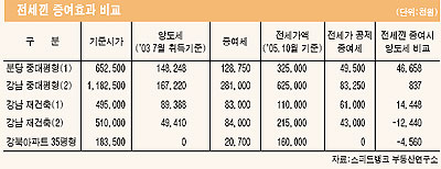 그러나 강남재건축(표 사례4참조)의 경우에는 증여 보다는 양도가 3000여만원 더 절세되는 것으로 조사됐다.