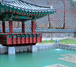 사진설명=광주 봉선동 쌍용스윗닷홈예가 아파트 단지에 설치된 연못과 정자가 입주자들의 좋은 휴식공간으로 활용되고 있다.
