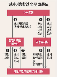 어음 할인 절차는 먼저 어음 심사 후 고객의 인터넷뱅킹을 통한 전자 어음 배서 양도가 끝나면 할인 대금을 지급하는 방식으로 이뤄진다.