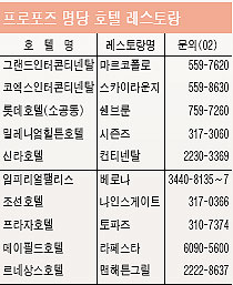 프로포즈 성공률이 100%에 육박하는 '프로포즈 명당'은 주로 호텔쪽에 포진해 있다. 특급호텔의 레스토랑은 럭셔리하고 환상적인 인테리어에 섬세하고 정교한 서비스가 어우러져 로맨틱한 분위기 연출에 안성맞춤이다. 적은 노력으로 자신의 센스가 돋보일 뿐 아니라 조금의 손짓으로도 신사다운 매너를 부각시킬 수 있다.