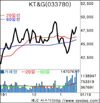 미래에셋증권 한국희 애널리스트는 “KT&G의 올해 이익성장이 다소 둔화될 것으로 보이지만 유휴 부동산 개발에 따른 수익 창출, 영진약품 등 자회사 가치 부각 가능성 등 중장기 주가상승 잠재력은 여전하다”며 “특히 전체 시장 조정시에는 주가 하방경직성이 높은 KT&G와 같은 종목이 부각될 것”이라고 진단했다.