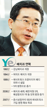 하지만 '예'라는 브랜드를 같이 쓰기 때문에 동일한 진료의 질을 유지하는 게 관건이다. 이를 위해 엄격한 시스템을 적용한다. 일단 '예'라는 브랜드를 쓰기 위해서 심사를 거친다. 현재 15개 병원이 예치과라는 이름을 받기위해 대기중이지만 이 중 3개만 가족으로 남게 될 가능성이 높다. 또 일정한 수준에서 벗어나면 퇴출시킨다. 지금까지 2개 치과가 시스템에 의해 이름을 쓸 수 없게 됐다. 물론 임상연구소를 통해 교육도 받고 해외학회도 같이 가는 등 교육에도 신경쓰고 있다.