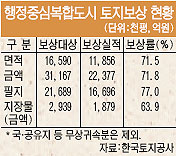 지난 8일 현재까지 유상보상 대상은 1659만평(3조1167억원) 중 1185만6000평(2조2377억원)을 협의를 통해 취득, 면적대비 71.5%, 금액대비 71.8%를 기록했다. 협의보상에 응하지 않고 주민이 수용재결 신청을 요청해 수용재결된 80만평 정도를 포함하면 실제 보상면적은 이보다 높다.