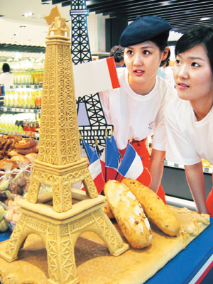 26일 ‘한·불(佛) 수교 120주년 기념 페스티벌’이 열린 서울 압구정동 갤러리아백화점에 프랑스를 상징하는 에펠탑 모양의 쿠키가 등장, 오가는 방문객들이 호기심 어린 눈길로 바라보고 있다. 다음달 4일까지 열리는 이번 행사에는 빵, 치즈, 쿠키, 갈비 등 다양한 프랑스 요리가 선보인다.
