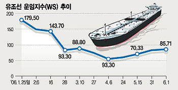 한때 50포인트 아래로 곤두박질 쳤던 유조선 운임지수(WS)가 수직 상승하면서 현대상선과 SK해운 등 국내 해운사들이 희색을 하고 있다.