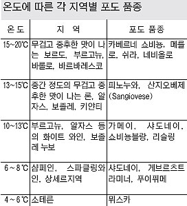 와인을 맛있게 마시기 위해서는 온도를 지키는 것이 중요하다. 일반적으로 화이트와인, 로제와인, 스파클링와인은 섭씨 6∼10도, 대개 레드와인은 13∼20도에서 마시면 제대로 맛을 즐길 수 있다.