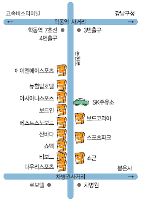 서울 학동역 사거리에서 차병원 사거리까지 길게 늘어선 스키, 보드 전문 매장. 지난 2002년부터 한 두개 매장이 들어서 현재 20여개의 스키, 보드 매장이 있는 이곳은 한창 여름 세일 중이었다. 이광수 에이엔에이 스포츠 영업 부팀장은 “알뜰 구매족에게는 지금이 스키, 보드 장비를 구매하는 가장 좋은 시기”라며 “이월 상품은 스키 시즌에 비해 40∼50%까지 할인된 가격으로 살 수 있다”고 말했다.