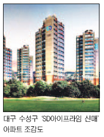SD건설은 대구 수성구 ‘SD아이프라임 신매’ 아파트(조감도)에 대해 33평형의 경우 1500만원으로 계약한 뒤 중도금 전액을 대출한 후, 입주시 가격 상승이 없을 경우 계약금 및 원금 전액을 계약자에게 돌려 준다는 것.