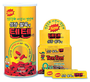회사측은 “‘코엔자임 큐텐’ 성분을 함유한 성인 영양제는 많지만 어린이 영양제로서 이 성분을 함유한 제품은 ‘텐텐’ 츄정이 처음”이라며 “천연색소 사용으로 유해성을 사전에 차단했고 어린이 치아 건강을 위해 ‘자일리톨’ 성분도 첨가했다”고 설명했다.