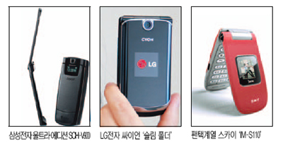 삼성전자도 지난 10월 말 두께 9.9㎜의 새로운 울트라 에디션 시리즈 SCH-V900을 국내 시장에 출시, 슬림 폴더 시장에 대한 지배력 강화에 나섰다. 팬택계열의 스카이 ‘IM-S110’도 젊은 층으로부터 인기를 얻고 있다.