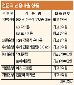 정부의 부동산담보대출 규제로 개인에 대한 은행의 대출행태가 신용대출을 강화하는 방향으로 바뀔 것으로 전망되는 가운데 의사, 변호사 등 전문직 종사자들이라면 이들을 우대하는 신용대출상품이 관심을 가져볼 만 하다.