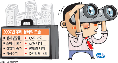 임영록 재경부 차관보는 “올해 우리 경제는 대내외적인 불확실 요인이 있기는 하지만 잠재 수준에서 크게 벗어나지 않는 성장과 고용 증가세를 나타낼 것으로 전망된다”면서 “부동산·금융·외환시장의 불안 요인에 선제 대응해 경제를 안정적으로 관리하면서 개혁 과제를 마무리하는 데 초점을 맞췄다”고 설명했다.