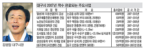 또 지역경제에 활력을 불어넣기 위해 매년 25개의 전략산업 및 미래 성장 동력분야 기술혁신형 기업을 선정해 중장기적으로 100개의 ‘스타기업’을 육성한다. 이들 기업 지원을 위해 2010년까지 IT테크노빌딩 2곳을 추가로 건설하고 지난해 12월 지정된 성서과학연구단지에 2011년까지 300억원을 투입해 고부가가치를 창출하는 기술집약형의 지식기반단지를 조성한다. 경북도와 공동으로 지난해 출범시킨 대경창업투자회사를 통해 올해 1000억원대의 투자펀드를 만들어 유망 중소기업을 지원한다.