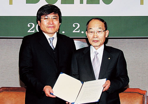 유한양행(대표이사 차중근)은 13일 비엔씨바이오팜(대표이사 김종우)과 C형 간염 치료용 합성신약 ‘BC2125’의 국내 사업화를 위한 특허 및 기술 라이선스 계약을 체결했다고 밝혔다. BC2125는 항바이러스제 개발 전문 바이오벤처기업인 ㈜비엔씨바이오팜에서 C형 간염 치료를 위해 개발한 신약. 이에 앞서 ‘BC2125’는 이스라엘 XTL사에 기술 수출되면서 현재 유럽에서 인터페론 불응 또는 재발성의 C형 간염환자를 대상으로 유효성, 안전성 평가를 위한 임상 1상 시험을 진행중이다. 비엔씨바이오팜 김종우 대표(왼쪽)와 유한양행 차중근 사장(오른쪽)이 계약 체결 후 계약서를 들어보이고 있다.