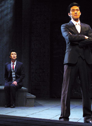 그런 면에서 두 배우의 공이 매우 크다. 어지간한 카리스마를 지니지 않고선 90분동안 관객의 시선을 끌 수 없다. ‘나’로 등장한 류정한과 ‘그’ 역을 맡은 김무열의 호흡이 착착 맞았기에 가능한 일이다. 동성애 장면을 연출할 땐 보는 이가 아찔할 정도로 실감난다.