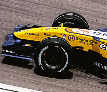 19일 한진해운에 따르면 4차례의 F1 월드챔피언십 타이틀을 포함해 18번 그랑프리 우승을 차지한 ‘르노(Renault) F1팀’이 지난 8일 말레이시아 쿠알라룸푸르에서 열린 ‘2007 F1 그랑프리’ 대회에서 경주용 자동차에 고 조수호 회장의 이름(사진)을 새기고 레이스를 펼쳤다