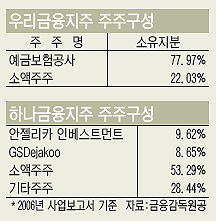 정부가 우리금융지주 민영화를 위해 고집해 온 ‘50%+1주’ 매각 원칙을 철회하면서 국내 금융컨소시엄의 우리금융 지분매입 가능성이 열린 가운데 우리금융과 하나금융지주의 통합가능성이 제기돼 관심을 끌고 있다.