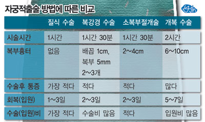 건국대 산부인과 김수녕 교수는 “이 수술법은 의사의 숙련도가 가장 관건”이라며 “보통 자궁이 임신 12주 이하의 크기로 골반 아래쪽에 있을 때 시술하지만 수술이 숙련된 경우에는 그 이상의 크기도 가능하다”고 말했다.