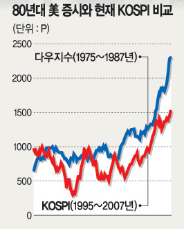 하지만 일부에선 한국 증시가 미국의 80년대 증시와 닮았지만 새로운 성장동력 구축이 필요하다는 지적도 나온다.