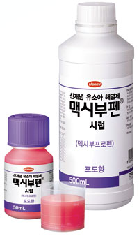 맥시부펜은 한미약품이 독자기술을 이용해 세계 최초로 개발한 유소아용 해열 시럽제. 지난해 12월 시판한 맥시부펜은 개량신약으로 5년간 23억원의 연구비가 들어갔다.