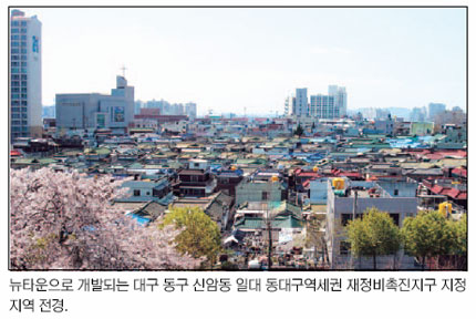 대구 동구청은 그동안 지난해 7월 발효된 ‘도시 재정비 촉진을 위한 특별법’의 적용을 받는 첫 시범지구로 지정받기 위해 건교부를 방문, 동구지역 지정의 유리한 점을 홍보해 왔다.