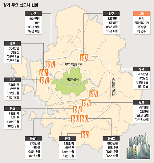 경기도에서는 오는 2015년까지 2기 신도시만 9개를 토해낼 예정이다. 이 곳에서 쏟아지는 새 아파트만해도 52만가구에 달한다.