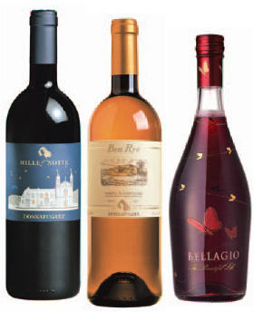 잘 익은 포도, 스트로베리, 라스베리 열매가 와인에 그대로 담겨 있다. 잔에 따랐을때 올라오는 거품이 입안을 즐겁고 상쾌하게 한다. 화려한 루비 칼라를 띄며 벨라지오만 마셔도 좋고 닭갈비·피자와 함께 가볍게 즐기면 좋다. 나비 모양의 병모양이 특징이다.
