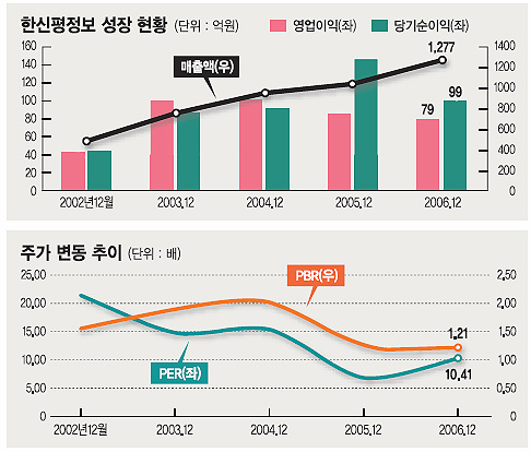 반면 영업이익은 2003년 이후 감소세를 보이고 있다. 2002년 43억원이었던 영업이익은 2003년 100억원을 넘었다가 2004년 102억원을 기록한 뒤 지난해에는 79억원으로 하락했다.