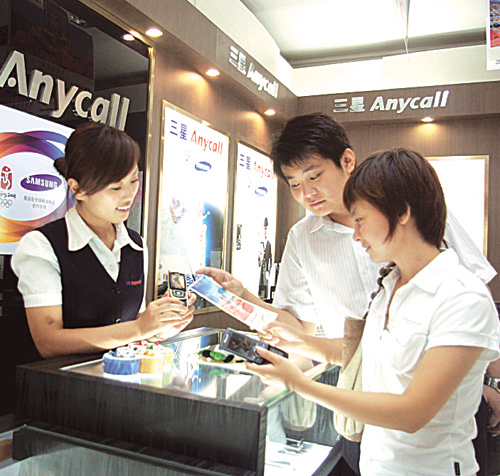 ■사진설명=중국 삼성은 지난달 13일부터 오는 12일까지 '올림픽 1주년 기념 휴대폰 판촉활동'을 전개, 휴대폰 구입자들에게 올림픽 마스코트 '푸와'를 증정하는 등 다양한 이벤트를 펼치고 있다.