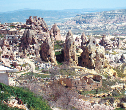 물론 이곳에서는 터키의 다른 지역에서 흔히 볼 수 있는 북적거리는 시장이나 양파모양의 사원들을 찾아보기는 힘들다. 대신 은밀하게 숨겨진 카파도키아의 참 매력을 발견할 수 있다. 원뿔을 엎어 놓은 듯한 용암층 바위 속에 이곳 사람들은 오래전부터 삶의 터전을 마련해 놓고 있는 것이다.