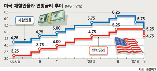 FRB의 기준금리와 재할인율 0.5% 인하는 금융시장을 놀라게 할 만큼 큰 폭이었다. 즉, FRB는 기준금리를 대폭 인하해 신용경색 위기가 급속히 진행되는 것을 막아보겠다는 것이다.