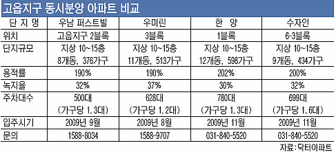 수도권 분양치고는 파격적인 조건이다. 10일부터 청약접수를 시작하는 고읍지구 동시분양은 성공할까.
