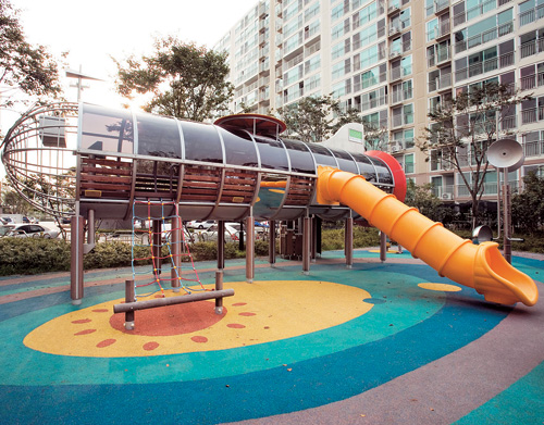 대우건설은 최근 산업자원부에서 주최하고 한국디자인진흥원에서 주관한 ‘2007 하반기 우수 디자인상품’에 푸르지오 엘리베이터 디자인, 푸르지오 아트월 문주, 푸르지오 과학놀이터, 트럼프월드마린 아일랜드가든, 유니버셜욕조, 욕실매입형 악세사리 등 6개 품목이 굿디자인으로 선정됐다고 밝혔다. 우주선 형상의 테마 과학 놀이터인 ‘사이언스파크’.