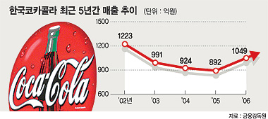 이처럼 코카콜라 본사만 살찌우는 원액가격정책이 지속되면서 코카콜라보틀링의 경우 지난 2003년 이후 매출성장세가 주춤해지고 적자폭이 늘어나더니 올해 결국 LG생건에 매각됐다.