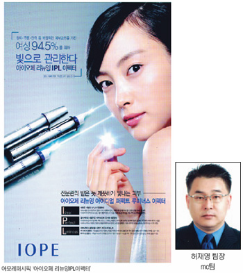 이런 배경에 착안해 아이오페 연구진은 피부과 전문의와 공동으로 피부과 IPL(Intense Pulsed Light) 시술의 장점과 화장품의 장점이 결합된 리뉴잉IPL이펙터를 개발한 것.