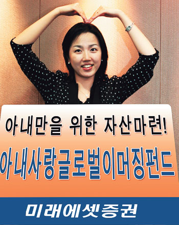 주식형펀드의 선두주자 미래에셋이 지난 26일 독특한 컨셉의 펀드를 출시해 주목받고 있다. 아내의 노후 준비를 위해 아내만의 자산을 마련해준다는 취지로 기획된 ‘미래에셋아내사랑글로벌이머징 주식형펀드’가 그것이다.
