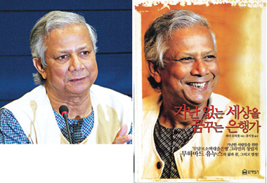 부다페스트클럽의 사무총장을 역임한 페터 슈피겔은 유누스의 이 같은 열정과 용기를 담은 ‘가난 없는 세상을 꿈꾸는 은행가’(좋은책만들기)를 펴냈다. 이 책은 방글라데시를 비롯해 인도 네팔 탄자니아 아프카니스칸 카메룬 등 저개발국은 물론 미국 캐나다 프랑스 등 전 세계를 대상으로 무담보소액대출을 통해 빈곤 퇴치에 힘쓰고 있는 유누스의 삶을 집중조명하고 있다.