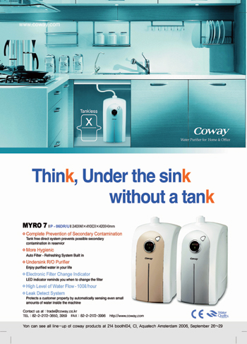 웅진코웨이 관계자는 “필립스를 비롯한 글로벌 가전업체들이 정수기, 공기청정기를 준비하고 있다”면서 “여기에 카르푸, 메트로 등 대형 유통체인들도 환경가전 판매공간을 따로 만들 조짐을 보이고 있다”고 말했다.